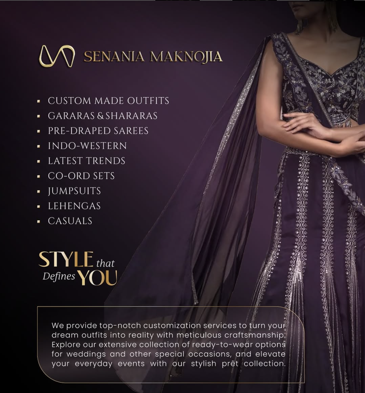 Senania Maknojia is a multi-designer studio that brings the best of luxury South Asian fashion to North America. Say goodbye to long wait times, expensive shipping and duties, we’re here to simplify your shopping journey and provide you with the best customer experience!